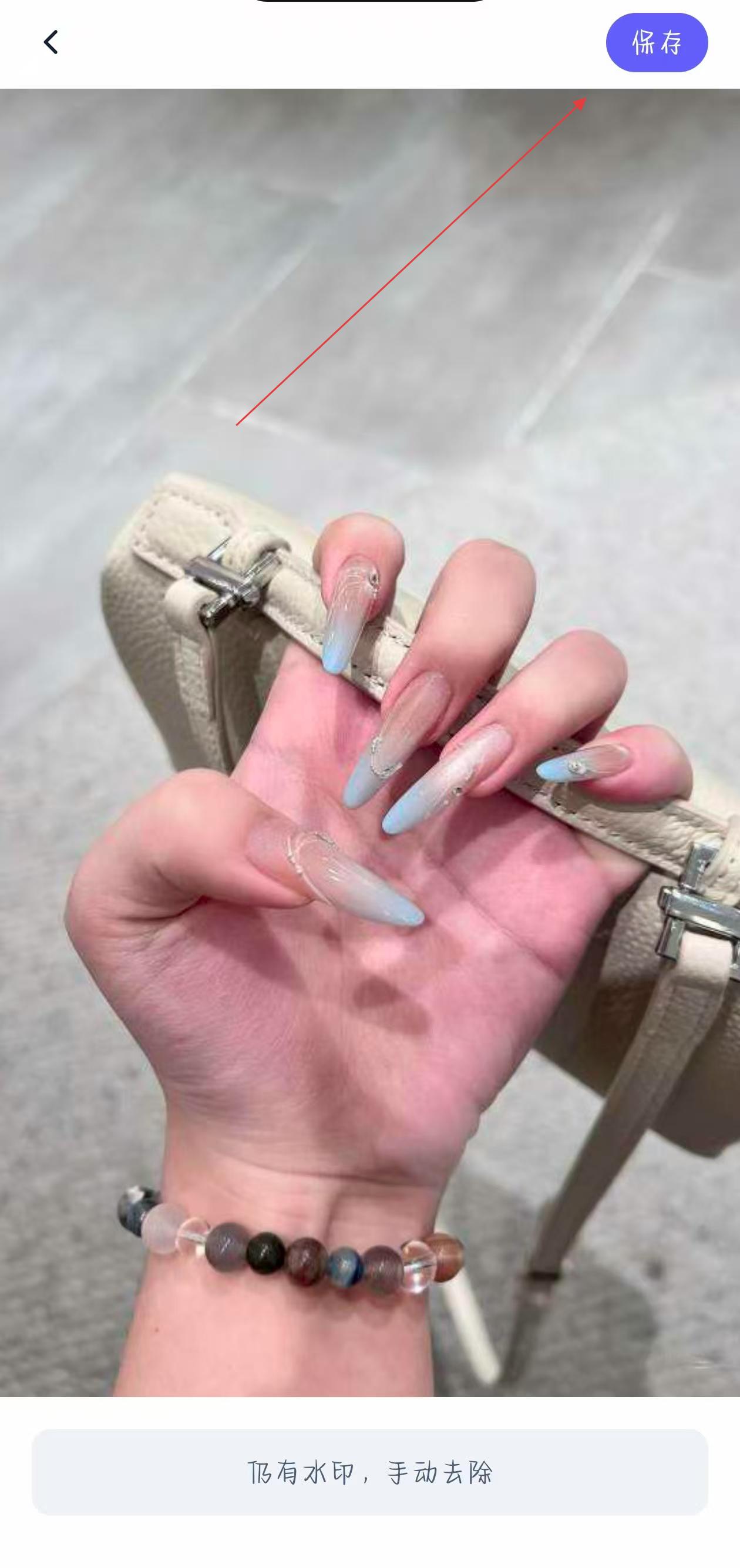 3、圖片上傳后,等待AI自動識別并去除水印,完成后點(diǎn)擊右上角保存按鈕。