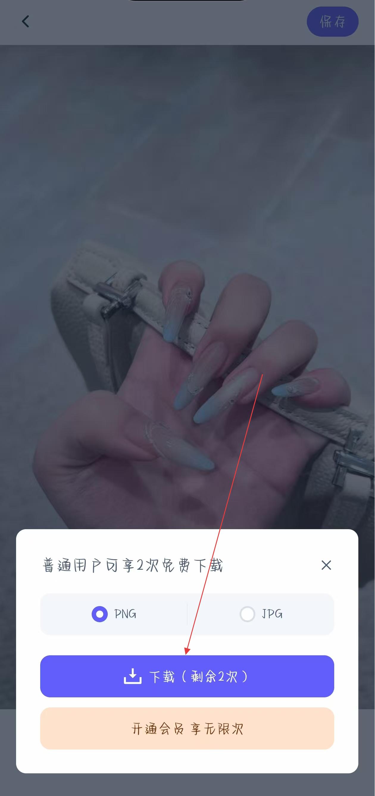 4、在彈出的保存選項(xiàng)中,選擇圖片格式,然后點(diǎn)擊下載按鈕,即可保存去水印后的圖片。