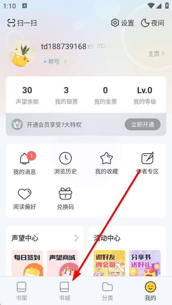 1、打開塔讀小說APP,點(diǎn)擊下方導(dǎo)航欄中的書城進(jìn)入書城界面。