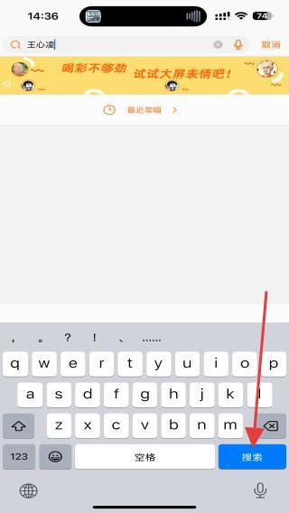 3、在搜索框輸入想要點(diǎn)歌的歌手名稱/歌曲,再點(diǎn)擊搜索的按鈕。