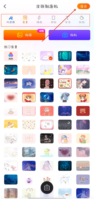 3、在皮膚制造機(jī)界面,利用上方功能對(duì)皮膚進(jìn)行個(gè)性化設(shè)計(jì),然后點(diǎn)擊保存。