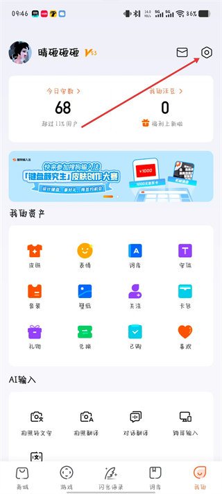 1、打開(kāi)搜狗輸入法APP,點(diǎn)擊我的選項(xiàng)。