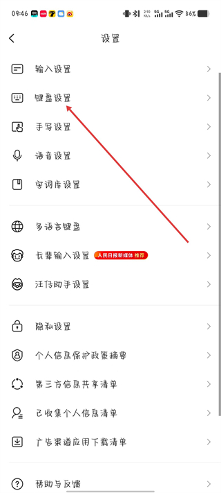 3、在設(shè)置頁(yè)面,點(diǎn)擊鍵盤設(shè)置選項(xiàng)。