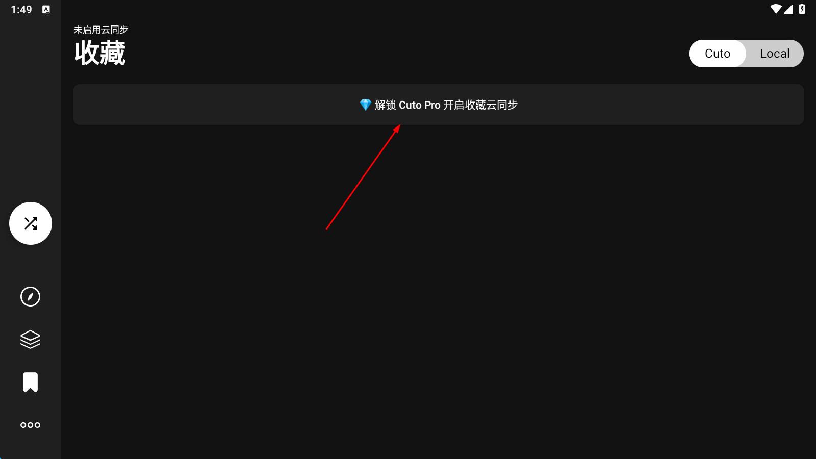 3、在收藏頁面,點(diǎn)擊“解鎖 Cuto Pro 開啟收藏云同步”提示,按流程完成 Pro 解鎖及云同步開啟。