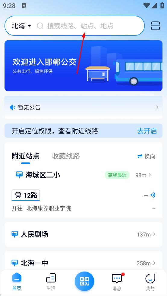 2、在APP主界面,找到頂部搜索框,點(diǎn)擊它,進(jìn)入線路搜索頁面。