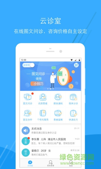 圖文問診:支持在線圖文問診,問診價格自主設(shè)定