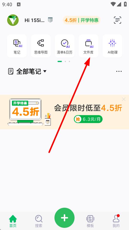 2、在首頁界面中點擊文件庫選項,進(jìn)入文件庫頁面。