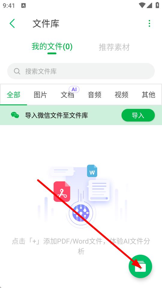 3、在文件庫頁面,點擊右下角的綠色+號按鈕。