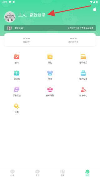 2、一進(jìn)入會直接在主頁內(nèi),點(diǎn)擊主人,戳我登錄的區(qū)域。