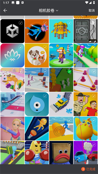 2、在相冊頁面中,瀏覽并勾選需要去除馬賽克的圖片,勾選完成后點(diǎn)擊右下角已完成按鈕,進(jìn)入圖片編輯流程。