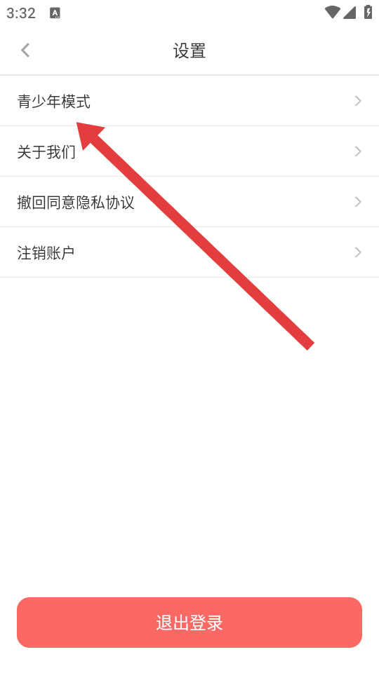 3、在設(shè)置界面點(diǎn)擊青少年模式,進(jìn)入青少年模式設(shè)置的頁面。