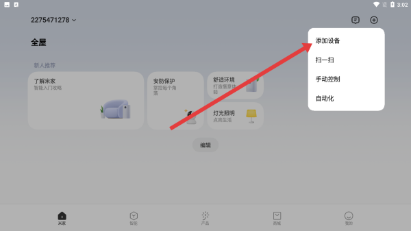 1、在米家app首頁(yè)中,點(diǎn)擊右上角的添加設(shè)備按鈕選擇設(shè)備添加。
