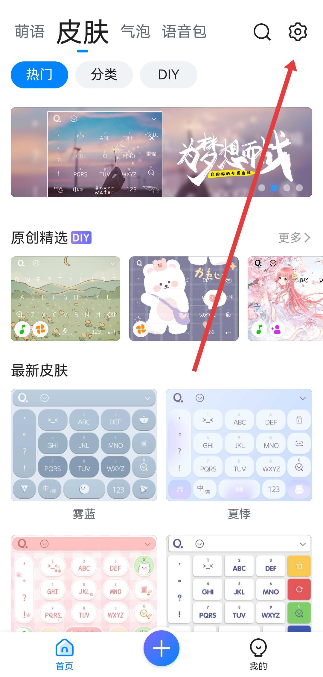 1、在QQ輸入法的首頁(yè),需要點(diǎn)擊右上角設(shè)置的圖標(biāo),進(jìn)入QQ輸入法的設(shè)置頁(yè)面。