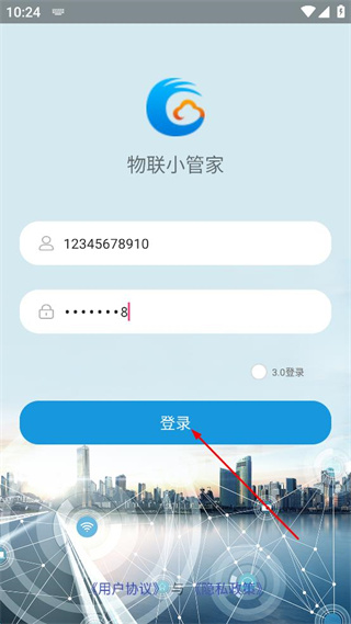 3、輸入完成后點擊登錄按鈕,完成物聯(lián)小管家APP的登錄。