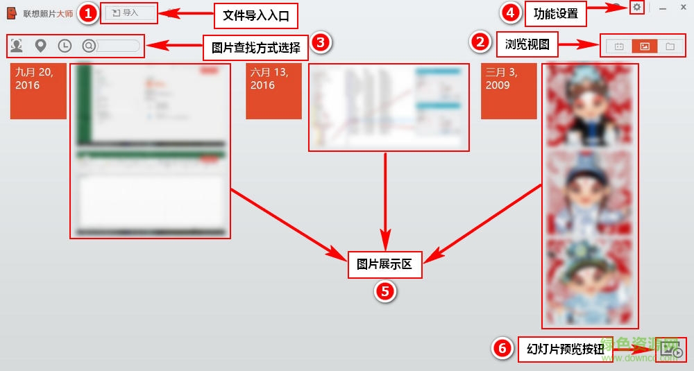 時(shí)間模式:聯(lián)想照片大師將照片按照拍攝時(shí)間歸類。