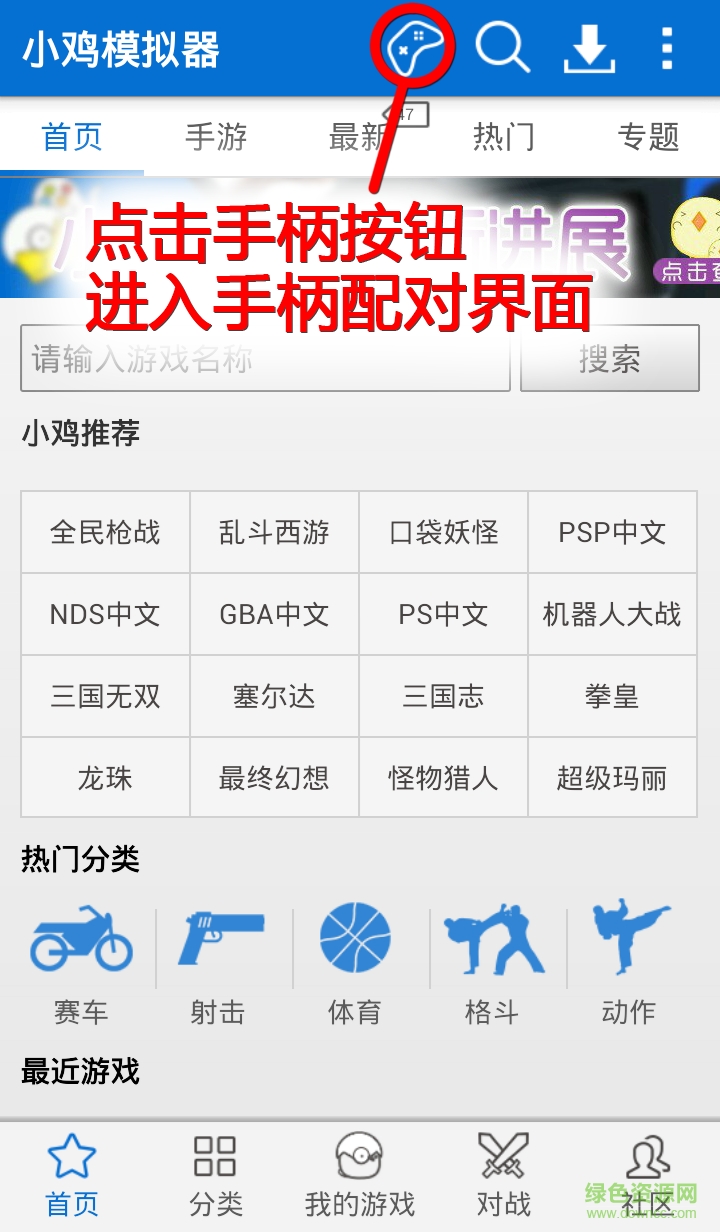 1、打開小雞模擬器游戲大全,點擊頂端的手柄按鈕