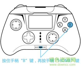 根據(jù)第一步提示啟動手柄時,按住手柄“B”鍵,再按手柄“HOME”鍵啟動手柄;這個模式同上面按住A鍵進(jìn)入?yún)^(qū)別無鼠標(biāo)模式功能,連接后僅亮起指示燈圖標(biāo)