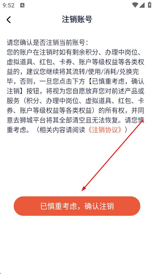 5、點擊已慎重考慮,確認注銷,即可完成賬號注銷操作。