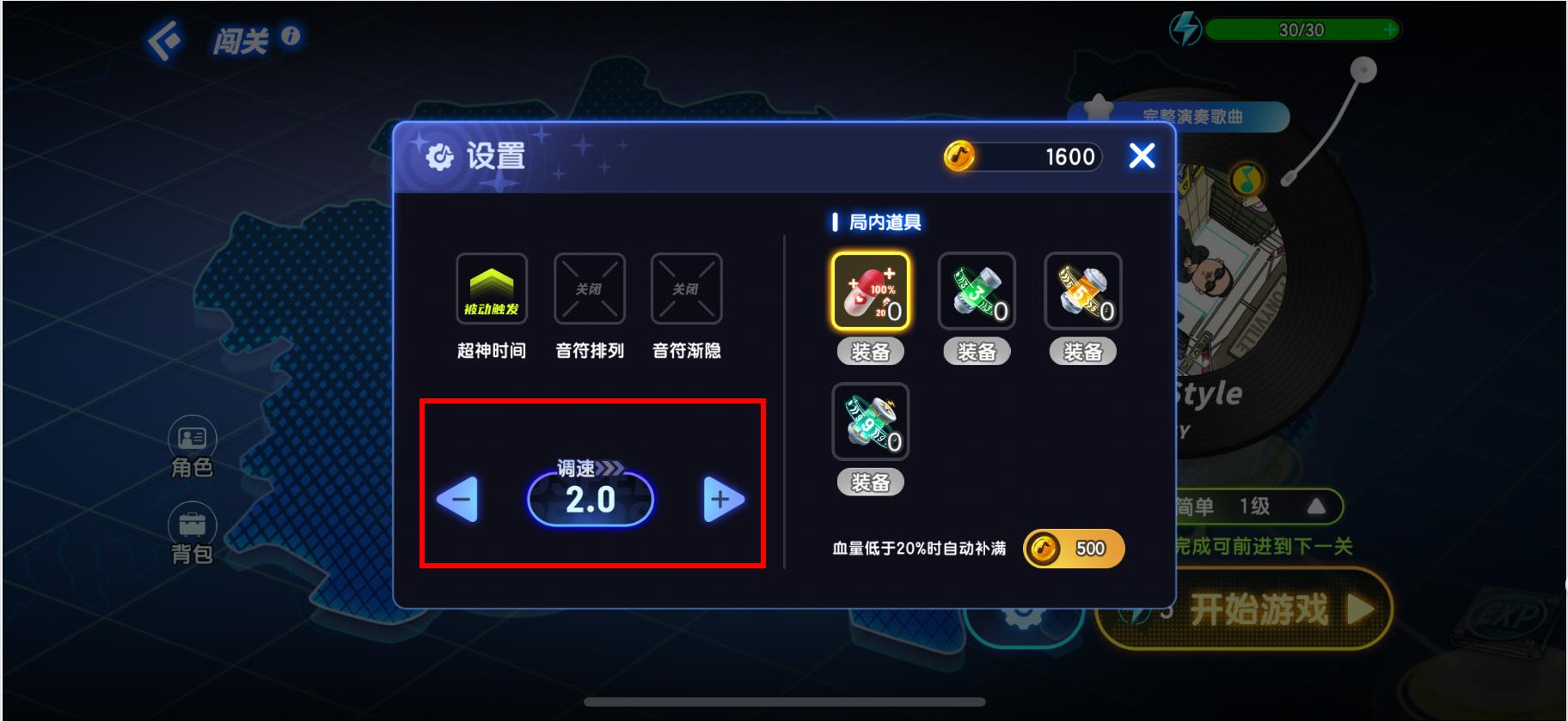 4、多種速度調(diào)節(jié):承了傳統(tǒng)敲擊音符玩法,加入適合觸屏的滑動玩法