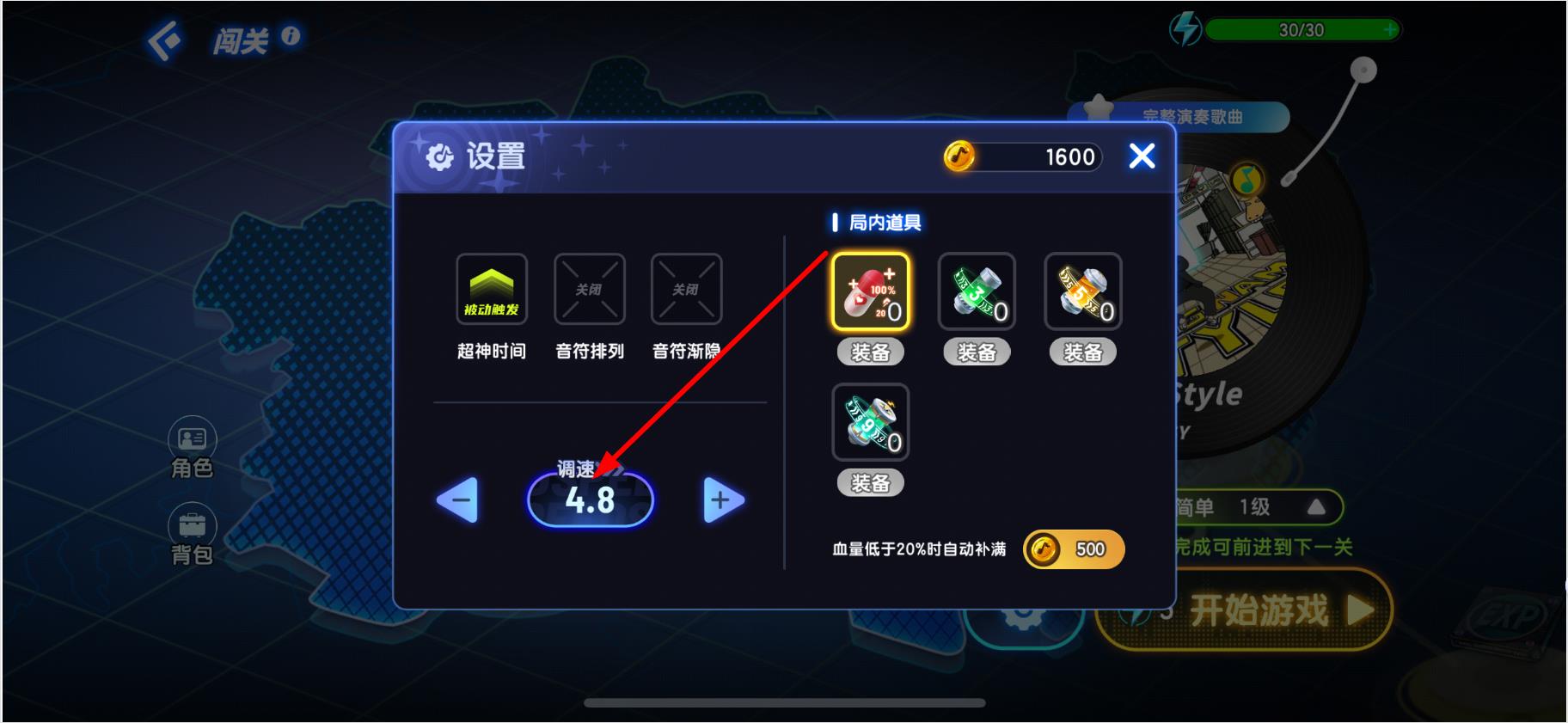 4、通過設(shè)置頁面的調(diào)速按鈕,可將速度調(diào)整為4.8。