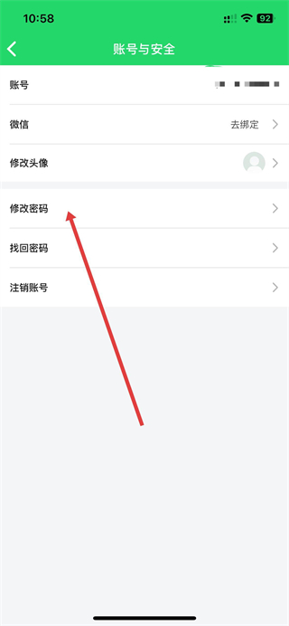 2、在賬號(hào)與安全頁(yè)面,點(diǎn)擊修改密碼選項(xiàng)。