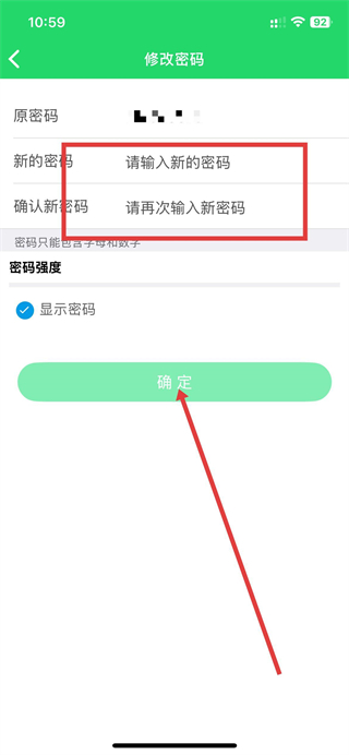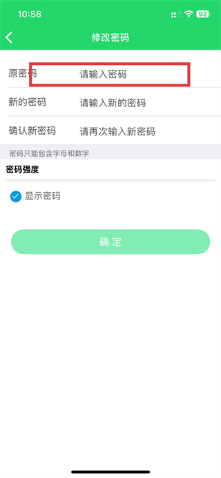 3、在修改密碼頁(yè)面,在輸入框中輸入原密碼。