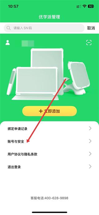 1、打開優(yōu)學(xué)派管理app,點(diǎn)擊賬號(hào)與安全選項(xiàng)。