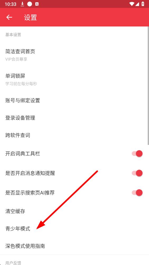 3、在設(shè)置界面中,在頁(yè)面下方找到青少年模式選項(xiàng),點(diǎn)擊進(jìn)入。