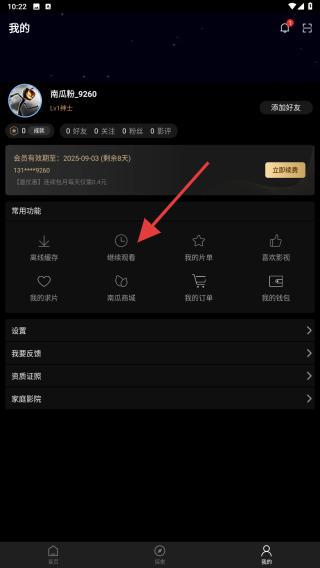 2、在個(gè)人中心的常用功能區(qū)域,用戶需點(diǎn)擊繼續(xù)觀看選項(xiàng)。