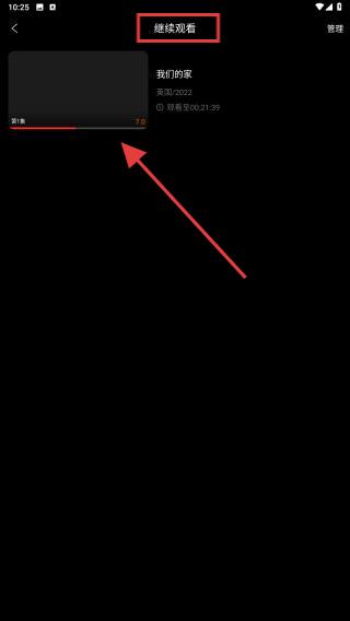 3、進(jìn)入繼續(xù)觀看列表后,選擇未看完的視頻記錄,點(diǎn)擊其縮略圖或繼續(xù)觀看按鈕,即可從上次暫停處自動(dòng)續(xù)播。