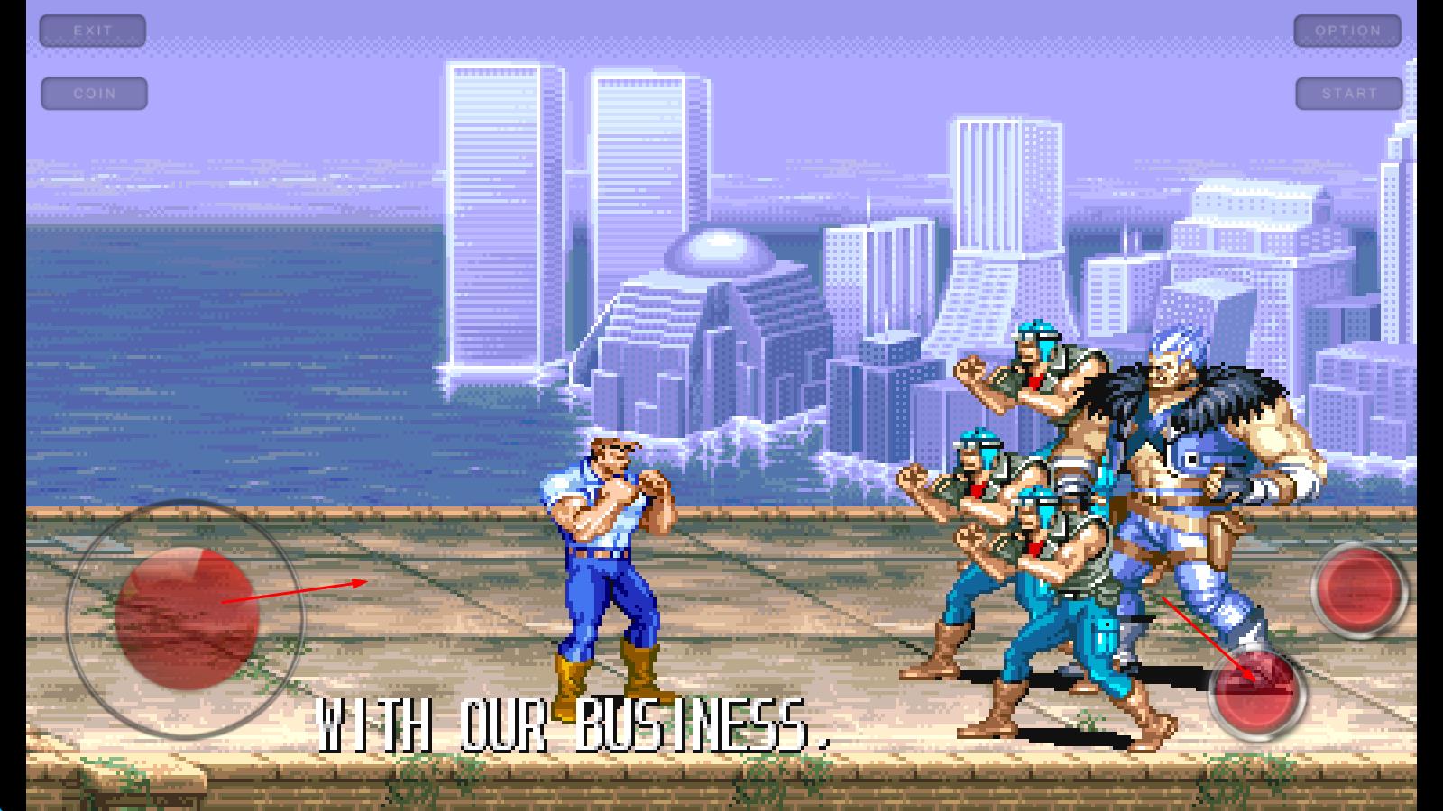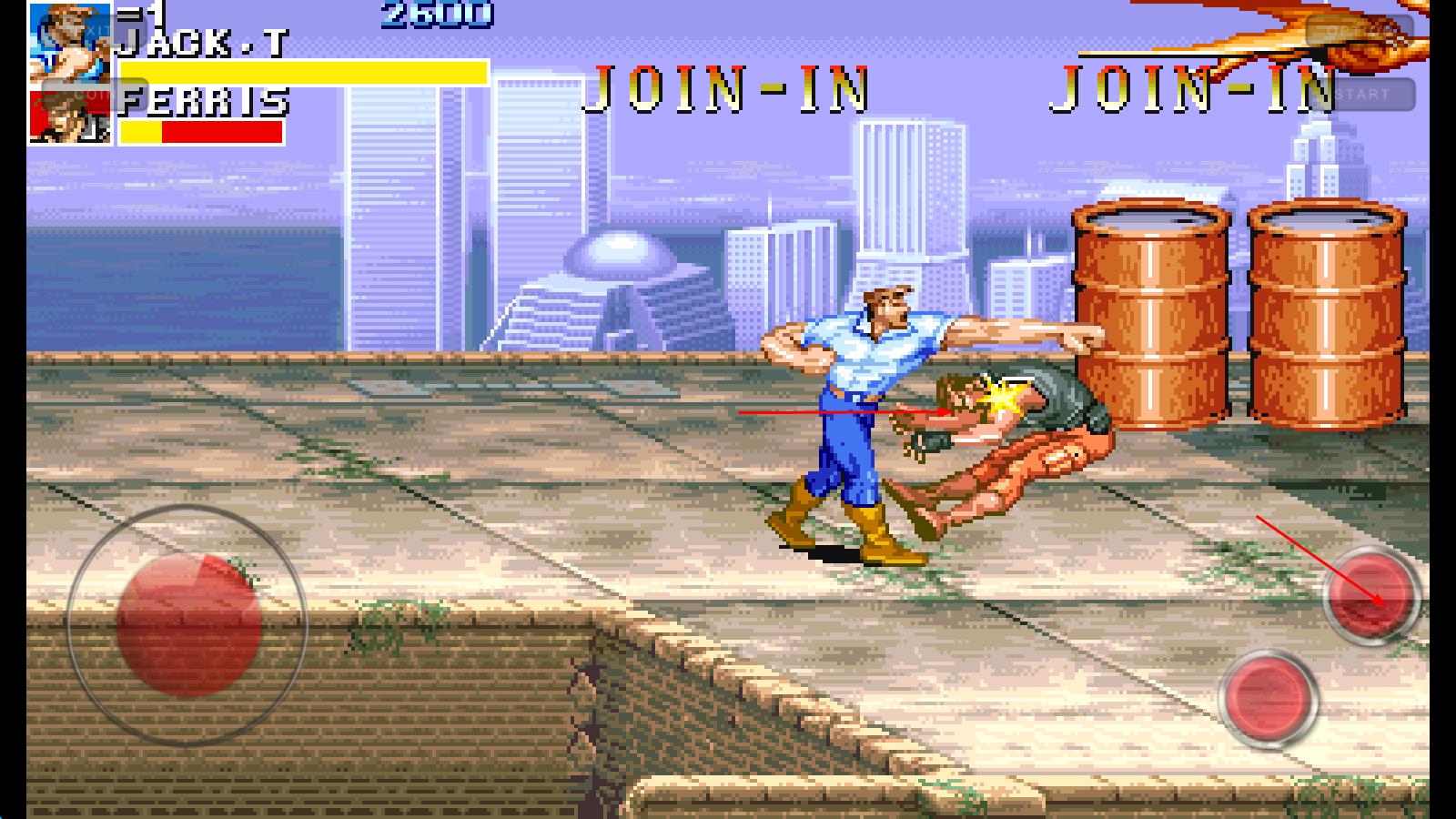 斜踢:跳躍到最高點時按A鍵(此時可以控制左右攻擊方向),穆斯塔法可以在跑動中使用這招,其余三人只能在原地跳躍時使用這招。 絕招:下上加A鍵。