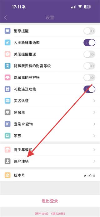 2、在設(shè)置頁(yè)面,點(diǎn)擊賬戶注銷選項(xiàng)。