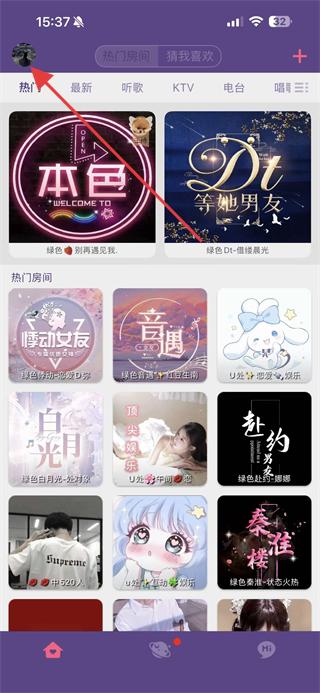 1、打開(kāi)糖糖語(yǔ)音APP,點(diǎn)擊左上角頭像,彈出功能菜單。