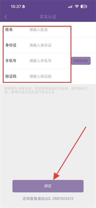 4、在實(shí)名認(rèn)證頁(yè)面輸入姓名、身份證、手機(jī)號(hào)及驗(yàn)證碼,點(diǎn)擊綁定,按提示完成認(rèn)證流程即可。