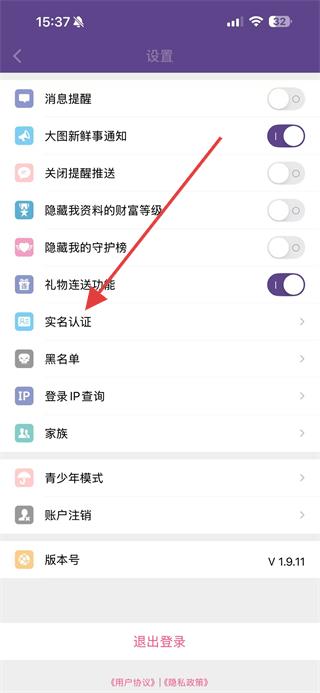 3、在設(shè)置頁(yè)面點(diǎn)擊實(shí)名認(rèn)證,進(jìn)入實(shí)名認(rèn)證頁(yè)面。