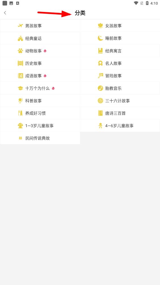2、首頁點(diǎn)擊全部故事,跳轉(zhuǎn)頁面后,通過右上角分類,能精準(zhǔn)找想聽的故事類別,快速定位心儀故事,選聽超方便。