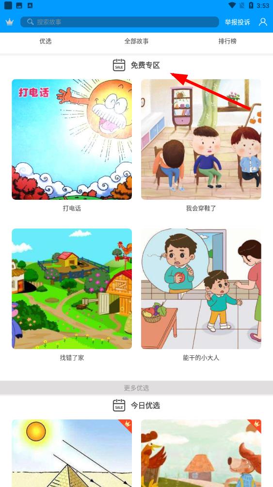 1、打開晚安媽媽睡前故事APP,首頁可見免費(fèi)專區(qū),提供大量免費(fèi)故事資源,家長無需付費(fèi)就能讓孩子享受精彩內(nèi)容,降低使用成本。