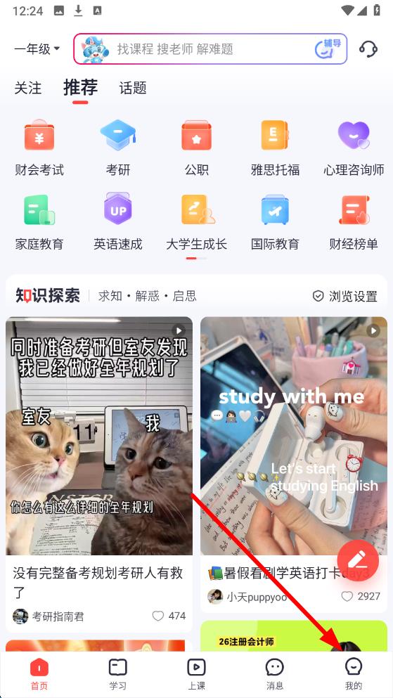1、打開高途課堂手機(jī)app進(jìn)入首頁后點(diǎn)擊頁面右下角我的選項(xiàng)。