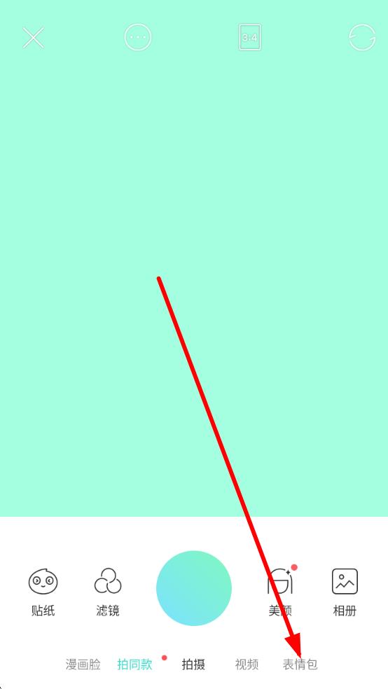 2、在拍攝頁,切換到底部表情包選項(xiàng),進(jìn)入表情包專屬拍攝模式,適配創(chuàng)意需求。