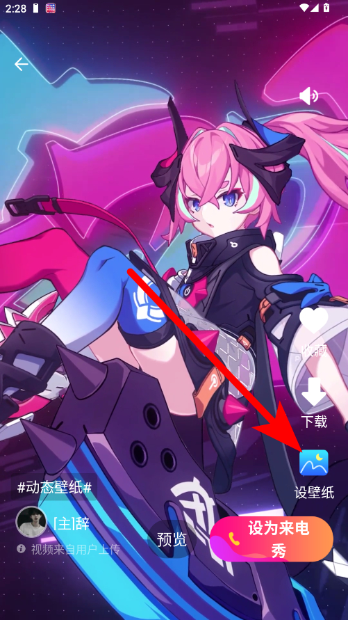 4、點(diǎn)擊所選動(dòng)態(tài)壁紙,進(jìn)入預(yù)覽界面,再點(diǎn)擊設(shè)壁紙按鈕,即可完成動(dòng)態(tài)壁紙?jiān)O(shè)置。