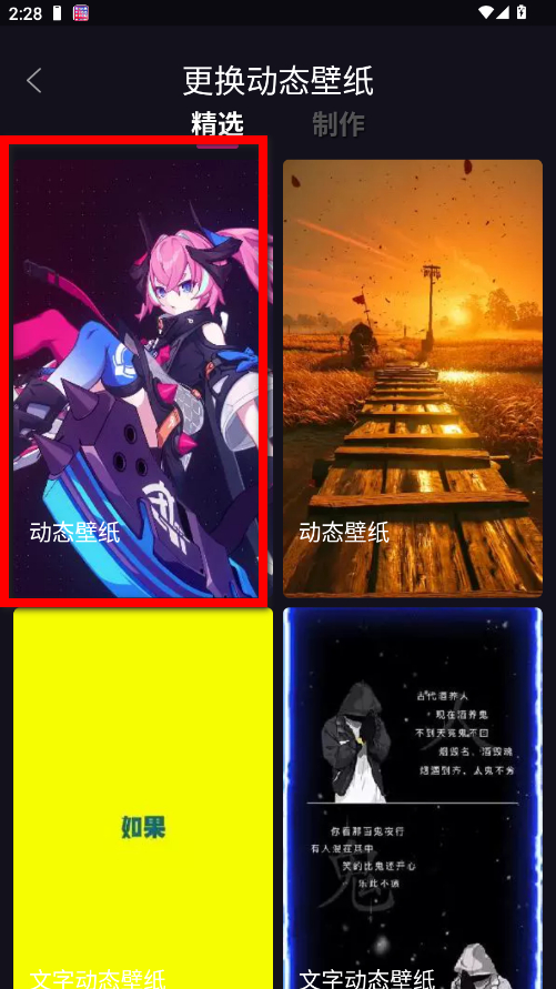 3、在更換動(dòng)態(tài)壁紙頁面的精選分類里,挑選喜歡的動(dòng)態(tài)壁紙。