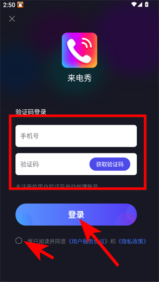 3、輸入手機(jī)號,點(diǎn)擊獲取驗(yàn)證碼,勾選同意,點(diǎn)擊登錄即可。