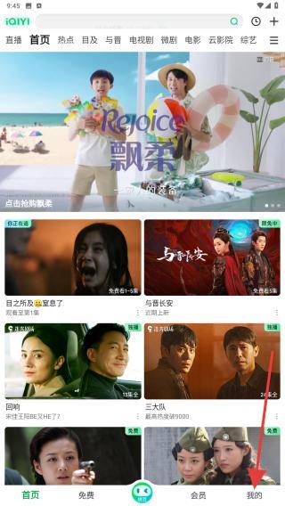 1、啟動愛奇藝APP進(jìn)入到首頁,點(diǎn)擊底部導(dǎo)航欄最右側(cè)的我的按鈕。