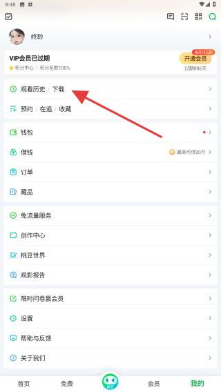 2、點(diǎn)擊后跳轉(zhuǎn)到個人頁面,找到并點(diǎn)擊觀看歷史的選項(xiàng)。
