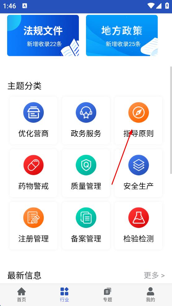 2、在行業(yè)頁面點擊指導(dǎo)原則,進入云端信息庫界面。