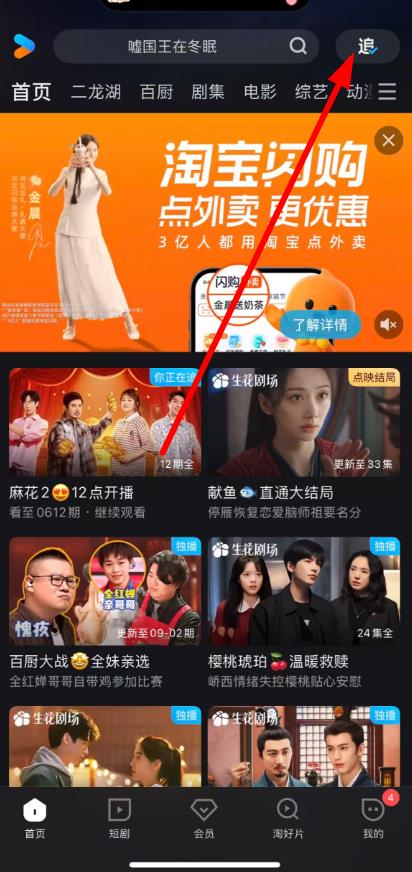 1、打開優(yōu)酷APP,點(diǎn)擊首頁右上角的追。