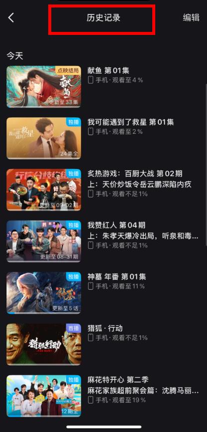 3、隨后會(huì)進(jìn)入歷史記錄頁面,在這里你可以查看之前觀看過的所有視頻內(nèi)容記錄。