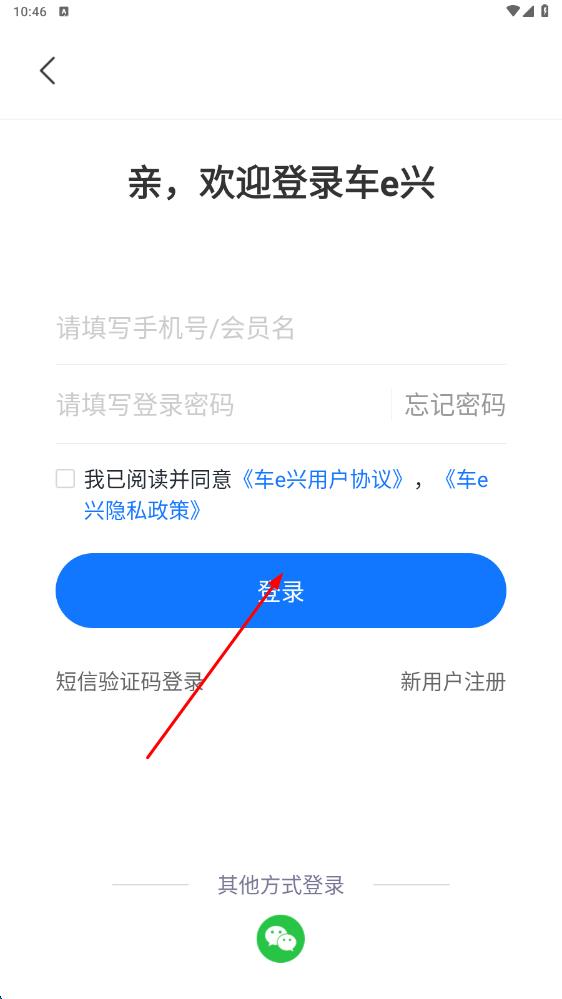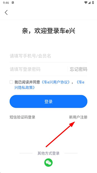 3、在登錄頁面,點(diǎn)擊新用戶注冊(cè)選項(xiàng),進(jìn)入手機(jī)號(hào)注冊(cè)頁面。