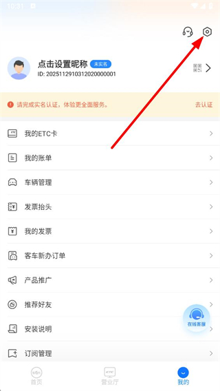 1、打開車e興APP后,在我的界面找到右上角的設(shè)置選項(xiàng)并點(diǎn)擊。