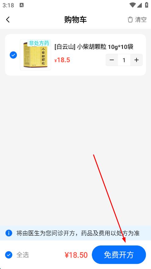 3、點(diǎn)擊底部的“購物車”圖標(biāo),進(jìn)入購物車頁面,點(diǎn)擊免費(fèi)開方。
